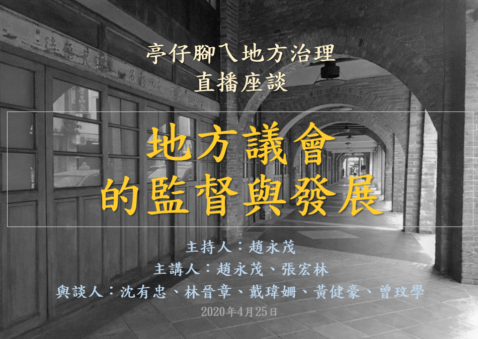 議會政治分別包括中央與地方層級,長期以來國人關注較多的是中央層級,對立法院有常態性與長期性的監督,如公民監督國會聯盟定期評鑑立法委員的表現,近年也逐漸擴大監督的對象,開始聚焦於地方議會。 前美國眾議院議長歐尼爾(Tip…